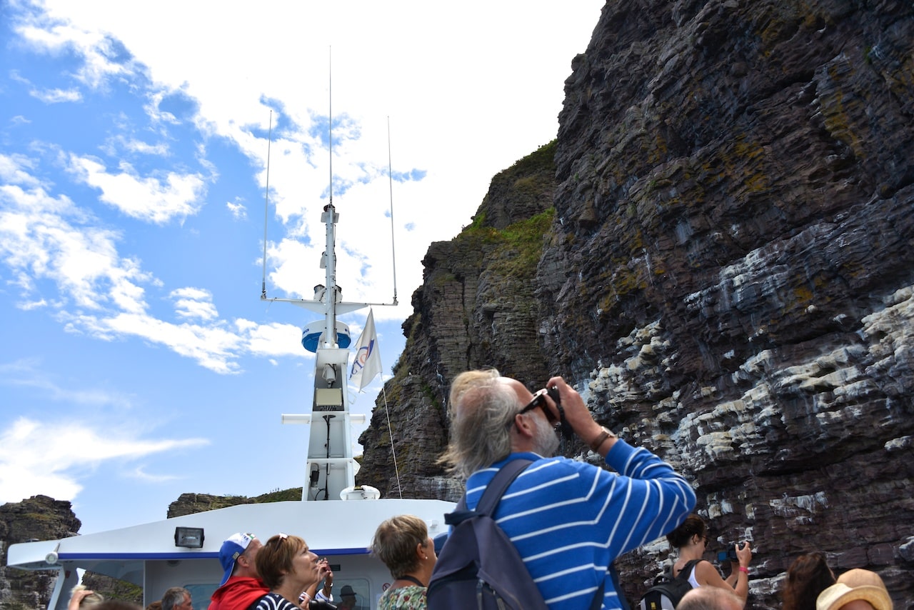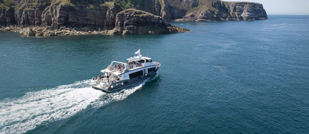 Des falaises de 70 mètres de haut tombant à pic dans la mer, vous serez aux pieds de cette muraille, réserve ornithologique où nichent guillemots, pinguouins, huitriers pie, cormorans huppés… Le Cap Fréhel est la destination finale de cette superbe croisière commentée. Dès le départ de St-Malo et Dinard, vous serez sous le charme de la Côte d’Emeraude : St-Enogat, St-Lunaire, St-Briac, Lancieux, St-Cast et longerez toute la côte jusqu’au Château de Fort la Latte datant du XIV eme siècle.